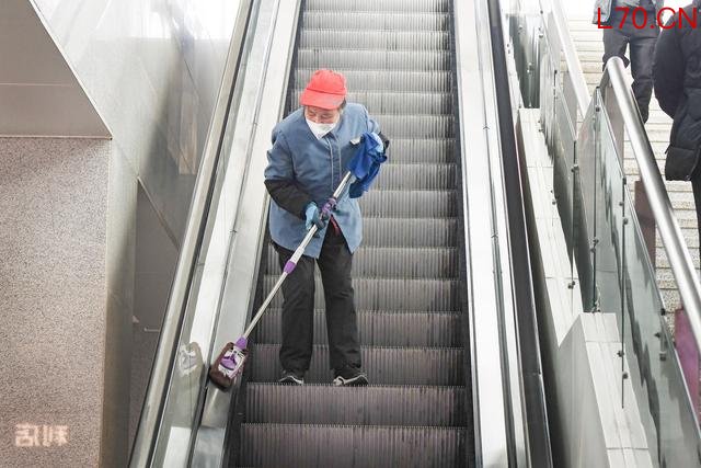 2026年1月13日,浙江金华,一女子在公共场所擦洗电梯 图据视觉中国