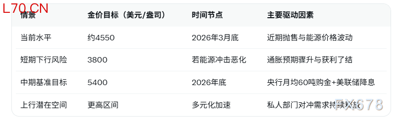 为更直观展示本次高盛预测与当前市场情景的差异,以下是黄金价格关键情景对比表格: