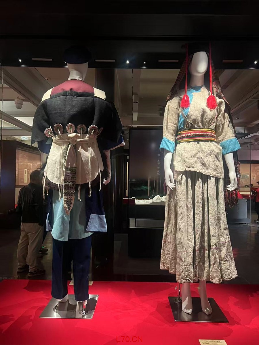 纳西族妇女服饰,(左)丽江市博物馆(右)云南省博物馆藏(李扬/摄)