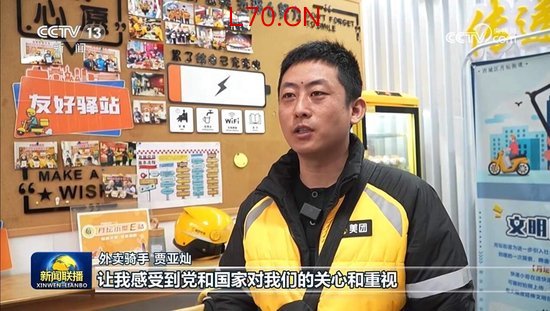 ▲美团骑手贾亚灿谈及对“新职伤”保障及骑手公寓等平台举措的感受(图源:央视新闻联播)