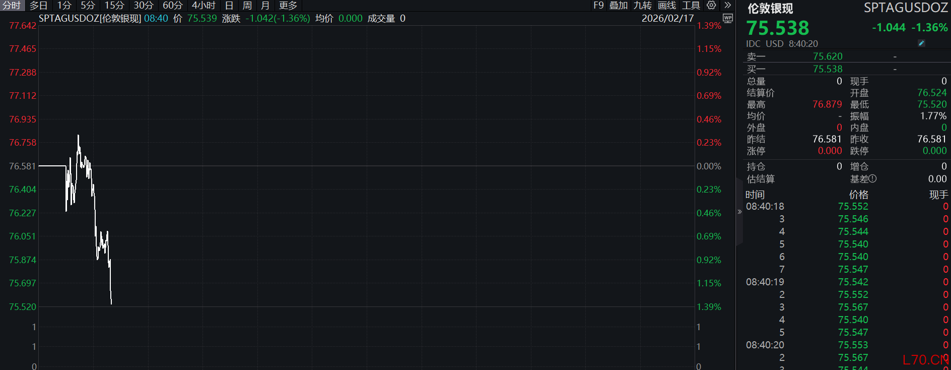 现货白银跌超1%