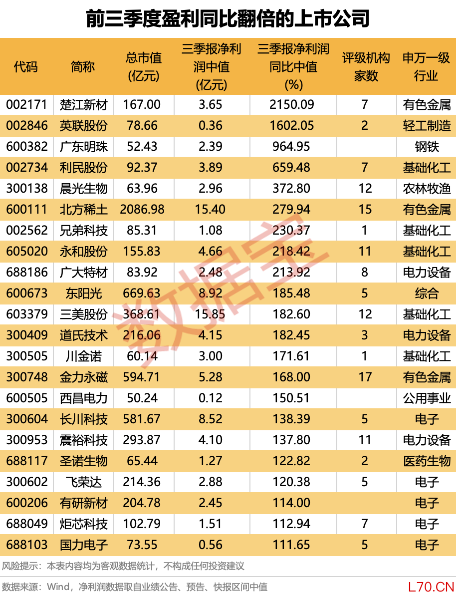 最高增长超20倍 三季报业绩大增股出炉