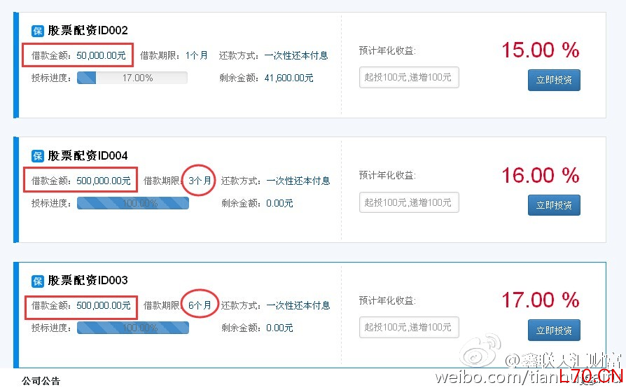 2015年1月,该公司与中技建投资打造的互联网理财服务平台“去哪投”上线,除了引进“股票配资”模式外,还引入了第三方融资性担保和资金托管机构,可为出资人提供年化14%—17%的收益回报,100元起投。